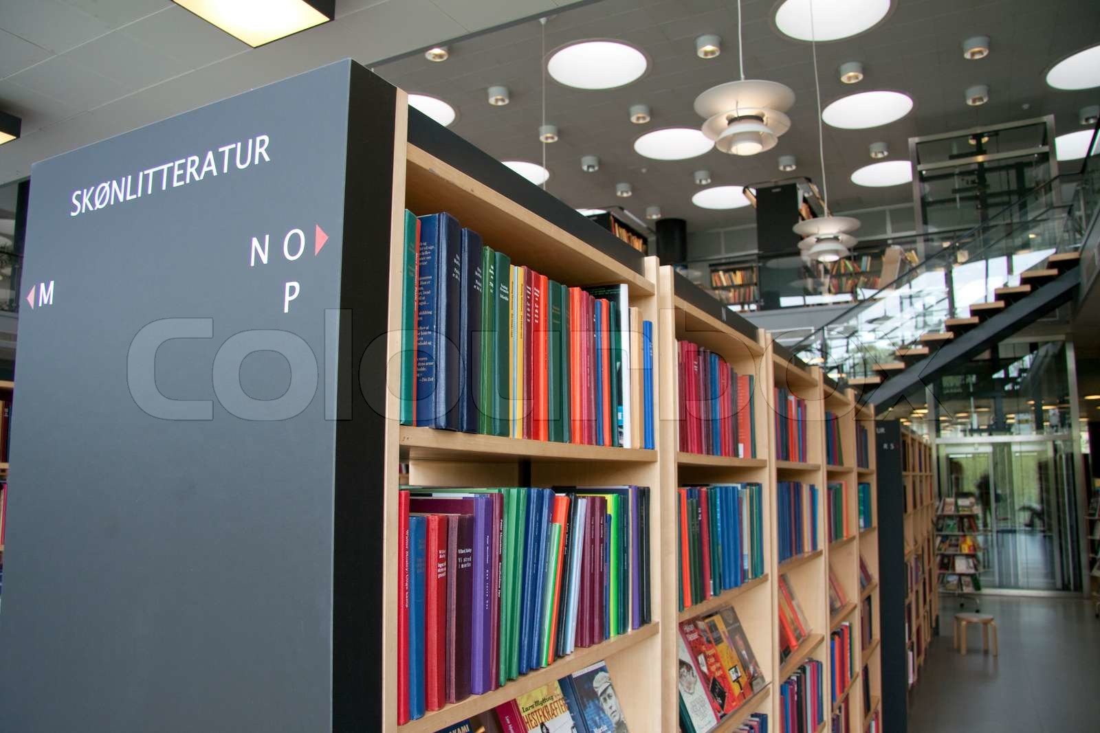 Bücherregale in einer öffentlichen Bibliothek Stock Bild Colourbox