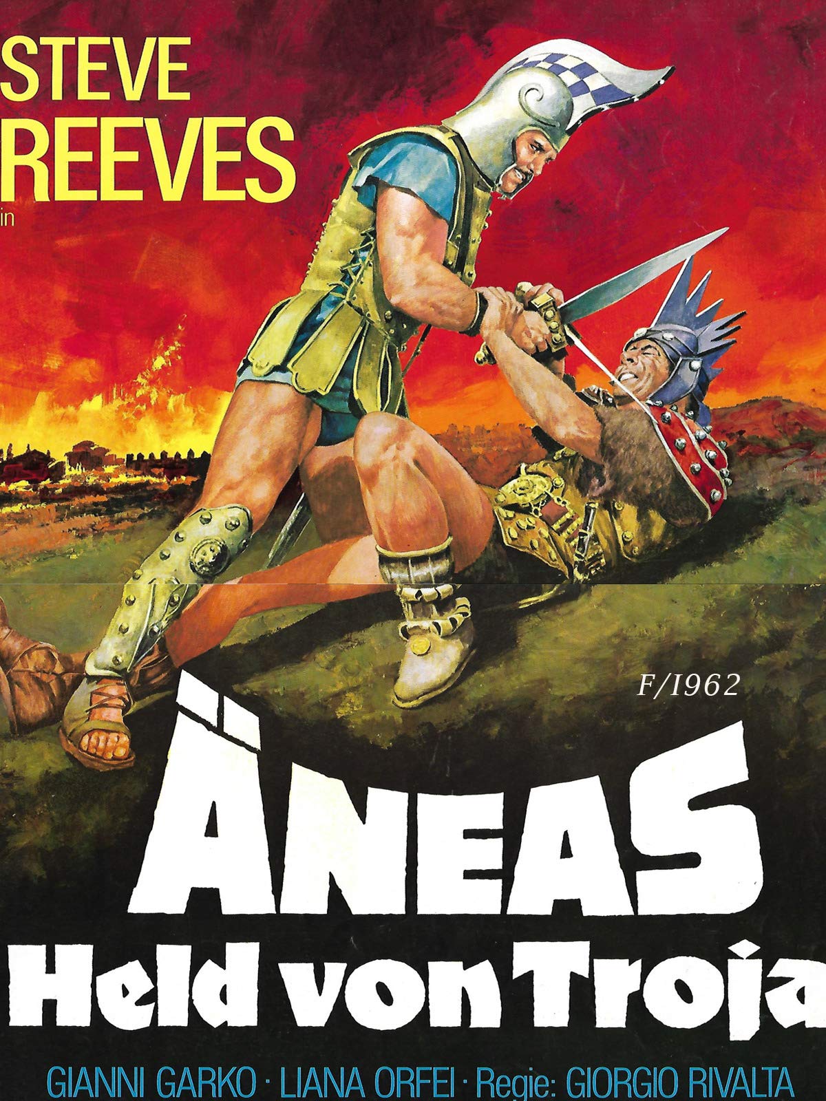 Äneas, Held von Troja. Nach der Zerstörung ihrer Stadt durch die Griechen suchen Äneas (Steve Reeves, „Mr. Universe 1950") und die überlebenden Trojaner eine neue Heimat in Italien, sind dort aber nicht willkommen…. Plumpes Schlachtengetümmel. Bewertung.