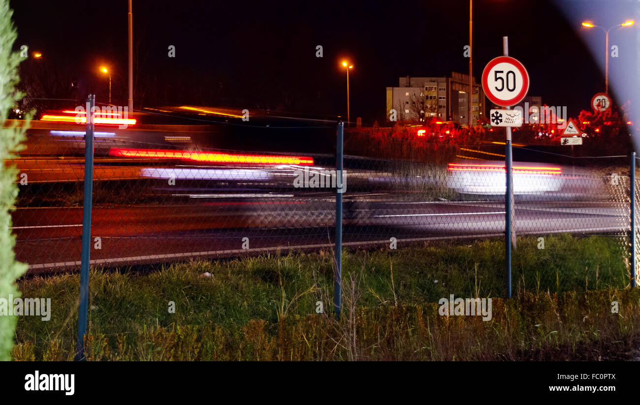 Straße mit Geschwindigkeit 50 km/h zu begrenzen Stockfotografie Alamy
