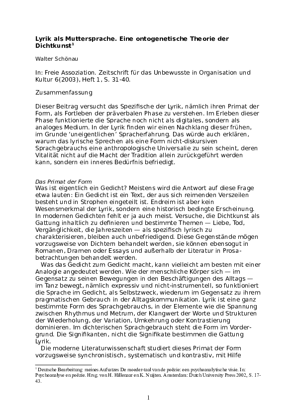 (DOC) Lyrik als Muttersprache. Eine Theorie der Dichtkunst 1 Walter Schönau