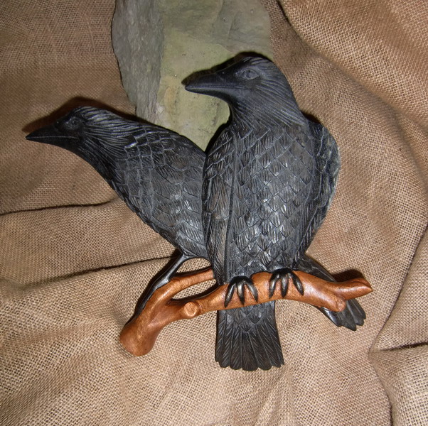 Odins Raben Hugin u. Munin klasse Holzwandbild Hand geschnitzt Wandbild Rabe eBay