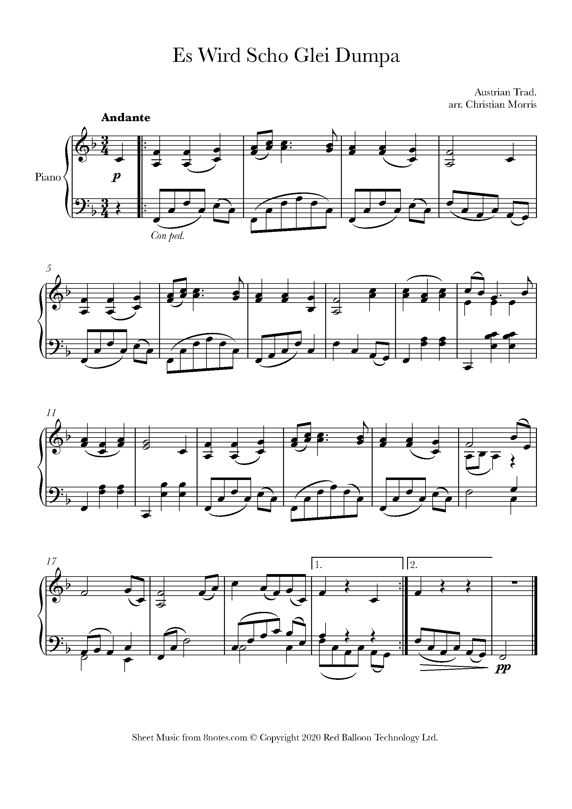 Es Wird Scho Glei Dumpa (Austrian Trad.) Sheet music for Piano