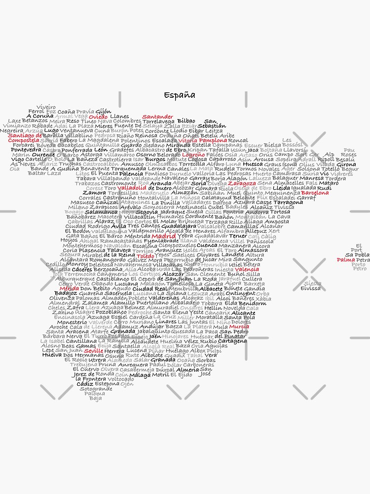 "Karte von Spanien. Schwarze Buchstaben auf weißem Hintergrund." Sticker von Nalichnik Redbubble