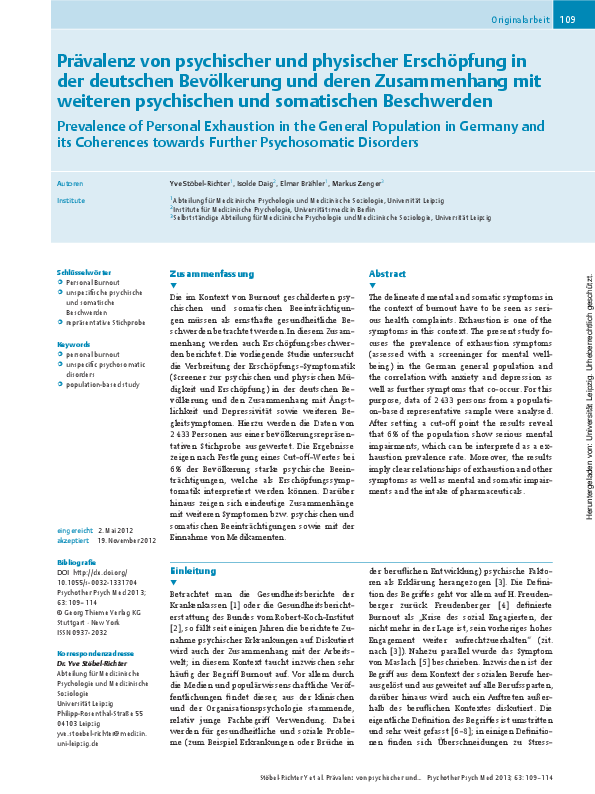 Prävalenz von psychischer und physischer Erschöpfung in der deutschen Bevölkerung und deren