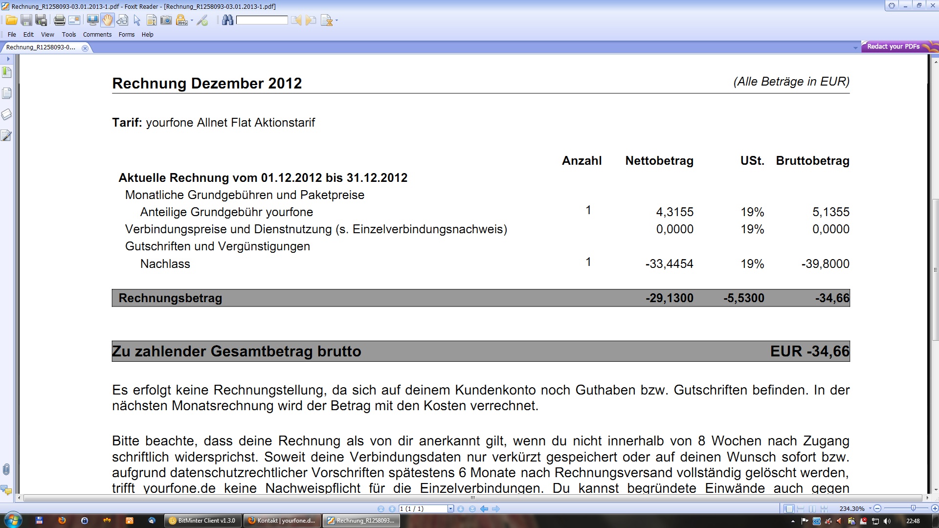 Handy Rechnung (Anteilige Grundgebühr)? (Geld, Kosten, Tarife)