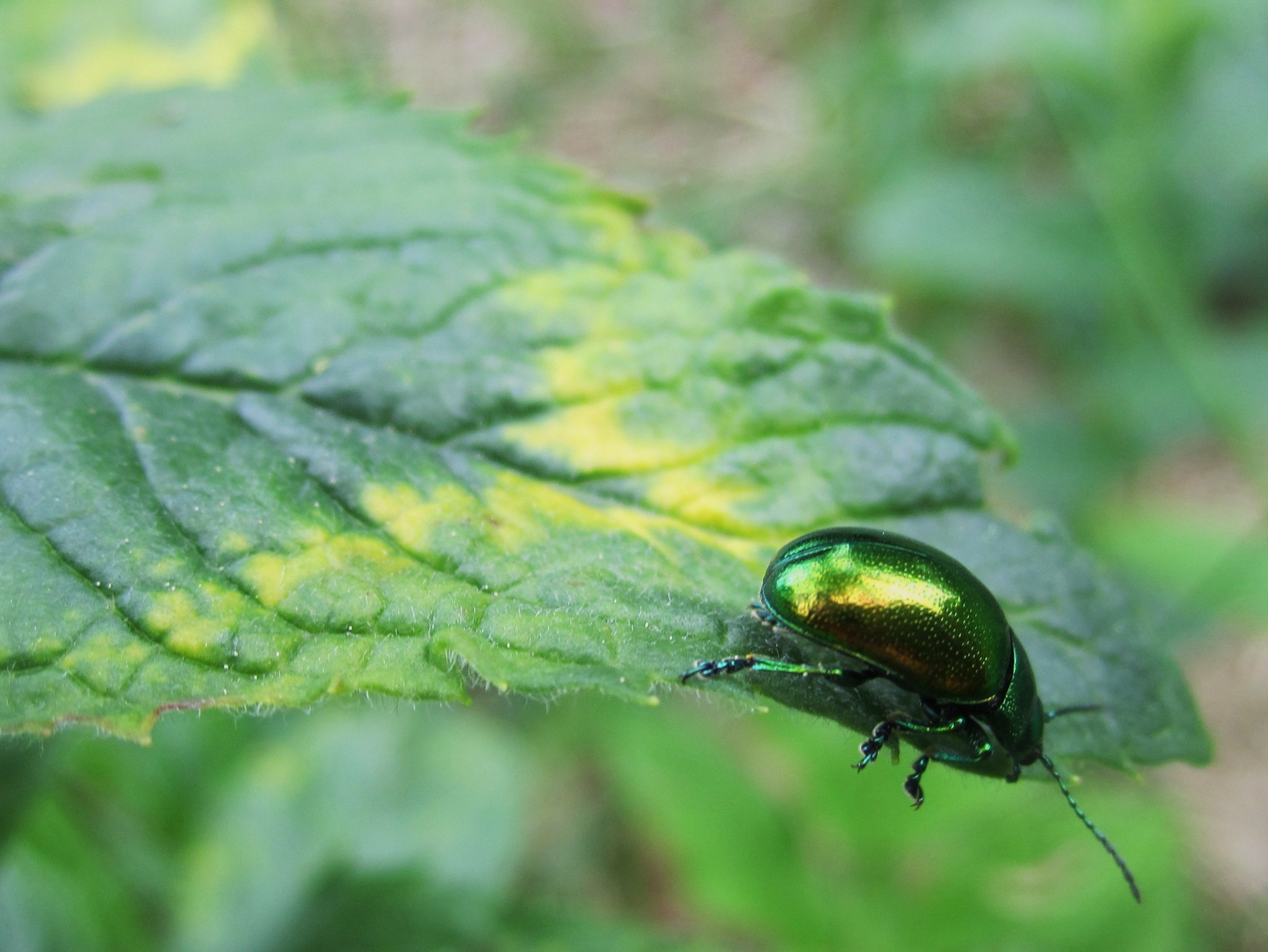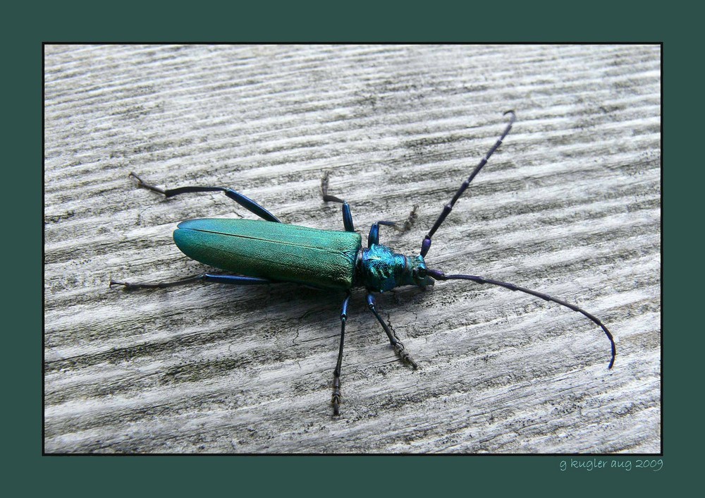 Grün schillerndes Käfer`l auf Entdeckungsreise. Vöcklabruck