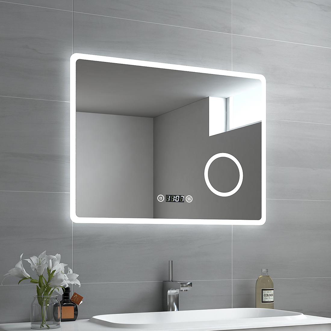 Led Badspiegel 80x60 mit Beleuchtung Touch Uhr Kosmetikspiegel Dimmbar Spiegel eBay