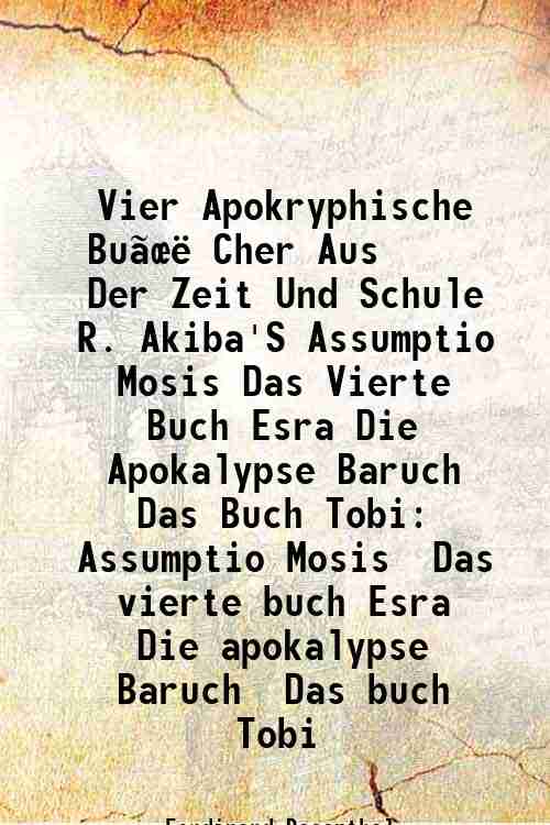 Vier Apokryphische Bu ë†Cher Aus Der Zeit Und Schule R. Akiba'S Assumptio Mosis Das Vierte Buch