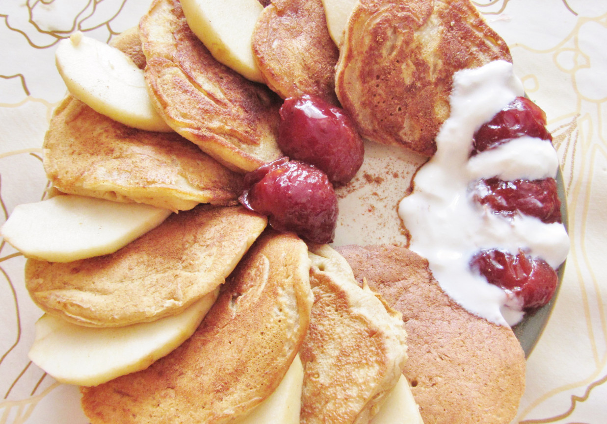 Przygotowanie: Rozgnieć banany w misce widelcem lub blenderem. Dodaj płatki owsiane, jogurt, proszek do pieczenia, cynamon i sól, i wymieszaj wszystko razem. Rozgrzej patelnię i posmaruj ją olejem lub sprayem do smażenia. Łyżką nakładaj ciasto na patelnię i smaż z obu stron na złoty kolor. Podawaj z ulubionymi dodatkami, na.