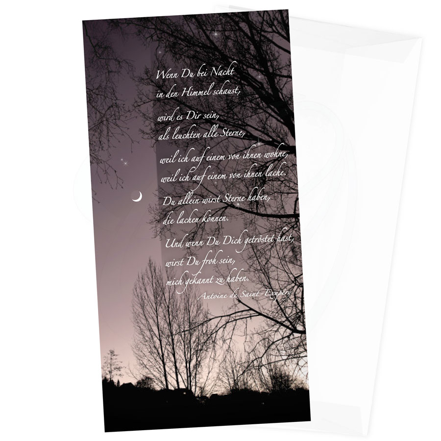 Edle stilvolle Trauerkarte, Gedicht aus Petit Prince "Wenn du bei Nacht in den Himmel schaust