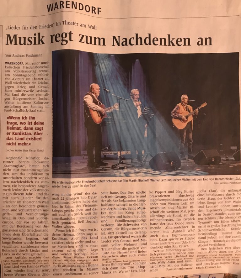 Lieder für den Frieden „Neue Westfälische“ vom 17.11.2021 Martin Bischoff, Singer/Songwriter